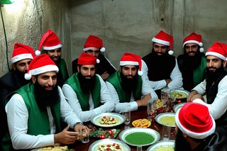 Undisclosed Location - Hamas leaders have paid tribute to Western academics at their Office Christmas Party, hosted in a dining hall with cement walls.